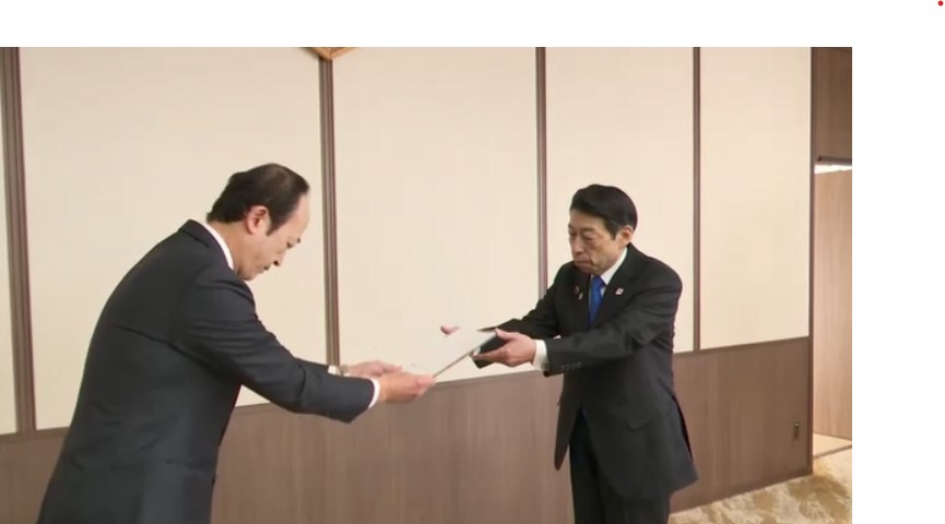 17日午前、再調査委の伊藤巧示委員長は1年3カ月に及んだ再調査の報告書を服部誠太郎知事に手渡しました。
